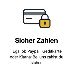 du kannst bei uns sicher per Paypal, Apple Pay, Kreditkarte und Klarna (Rechnung oder Raten) bezahlen.